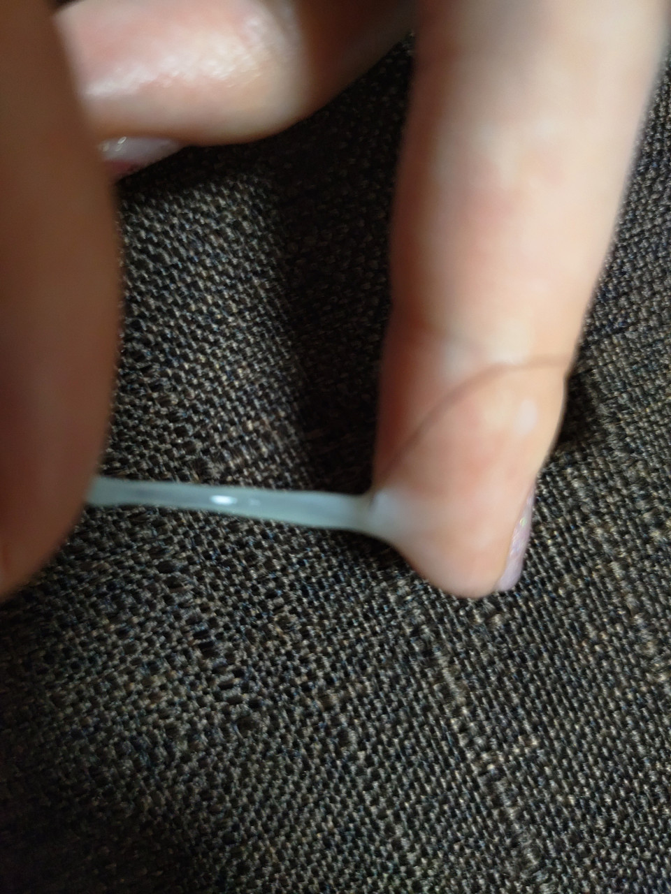 オリモノシートつけるの忘れて💦 こんなにオリモノがついちゃった(。>﹏<。)💓 引っ張ったら伸びるんですっ(゚∀゚)✨ オリモノってこんな感じ??