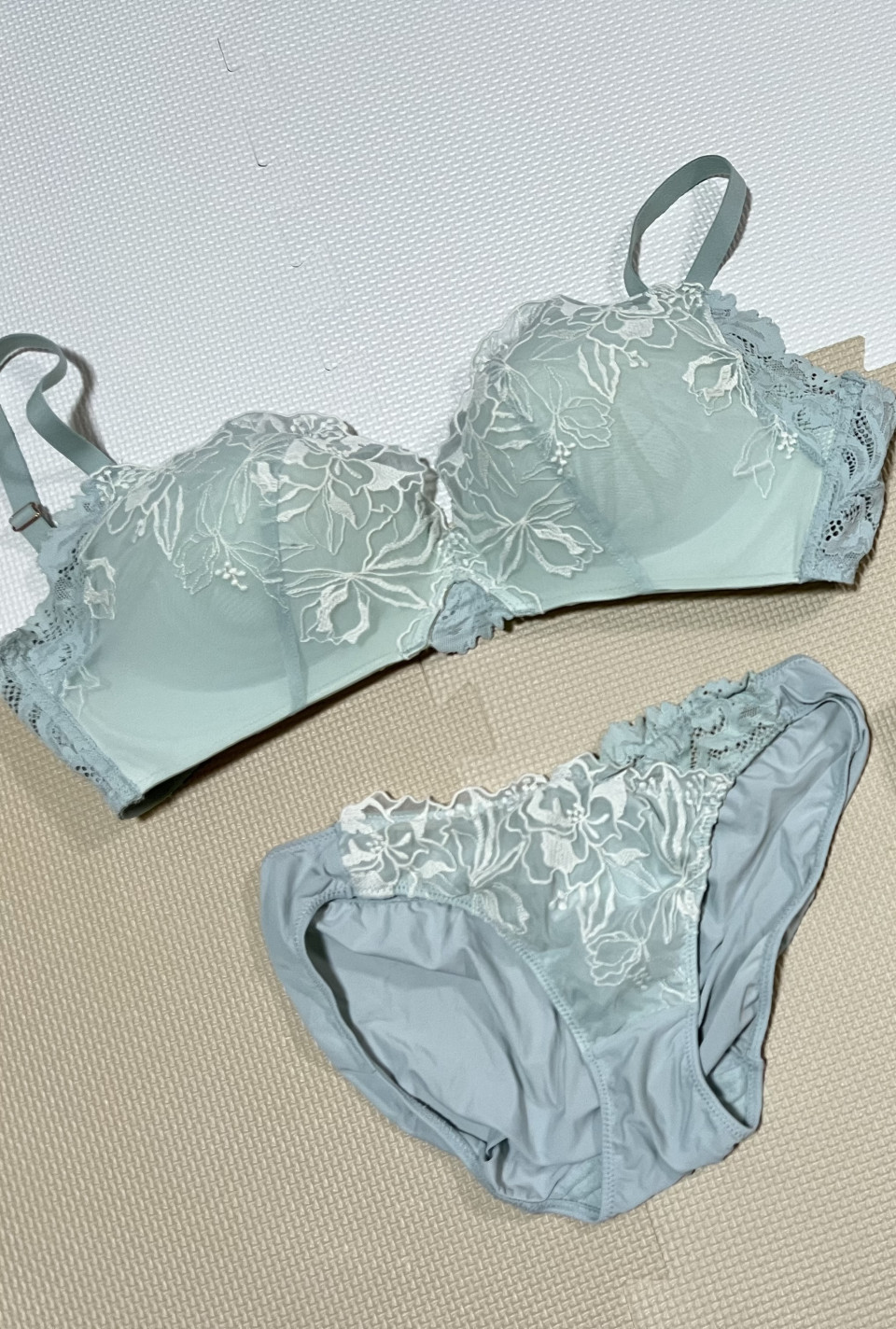 お気に入りの水色のブラパン出してます( > < )