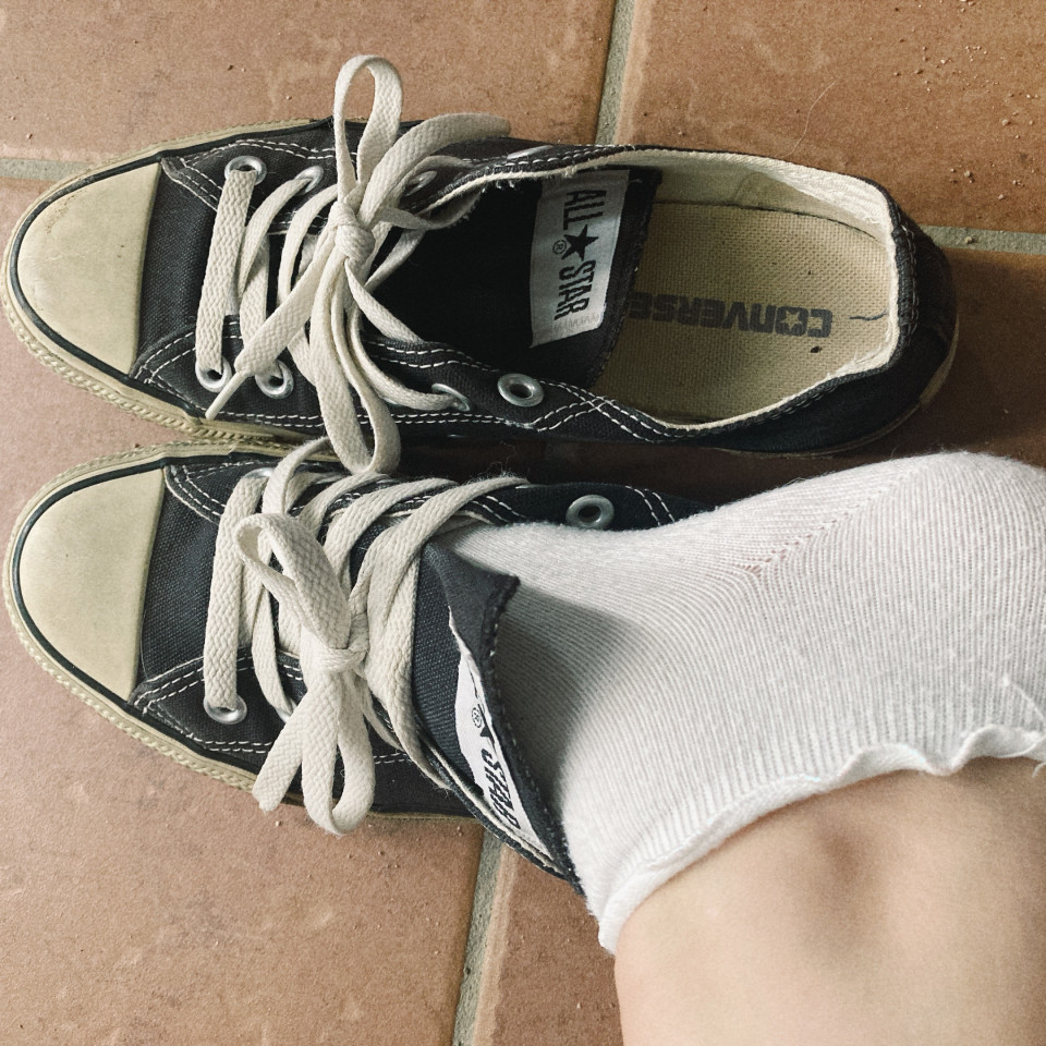 この黒のコンバース、何にでも合うからヘビロテしすぎて、これ履くだけで足のくささ倍増🤭!