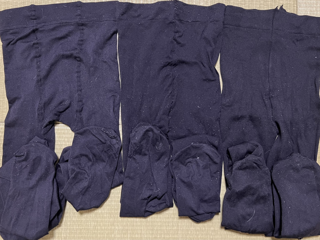 左から ①160デニールタイツ ②普通?タイツ 毛玉多め ③ATSUGI 厚めタイツ となっています🙇♀️