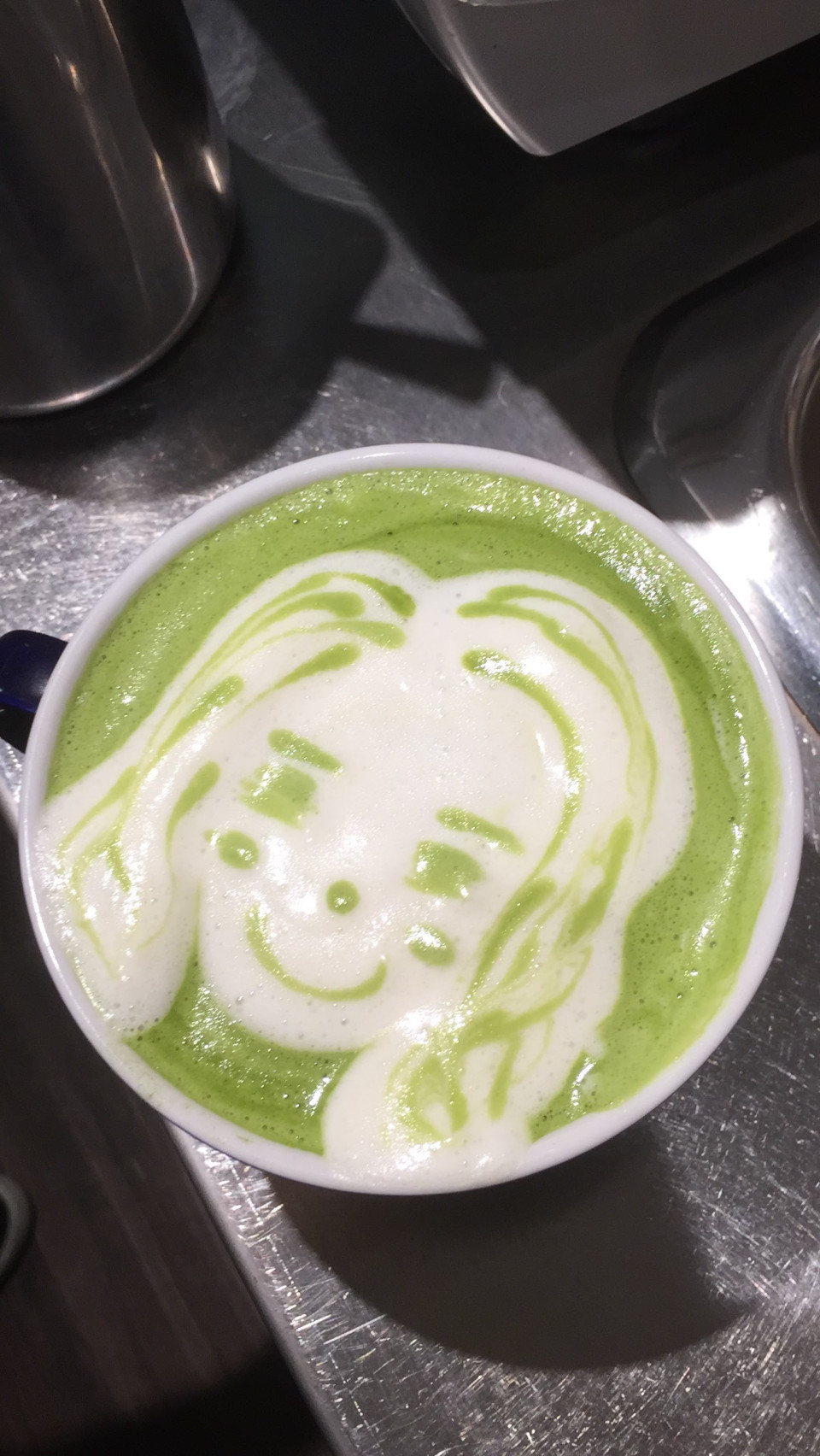 すごーい!❤️❤️❤️ 先輩がラテアートしてくれた ☕️💕💭 わたしの顔らしいんだけど、全く似てないところはご愛嬌🤭 こんなのが描けるなんて…すごいなあ❤️