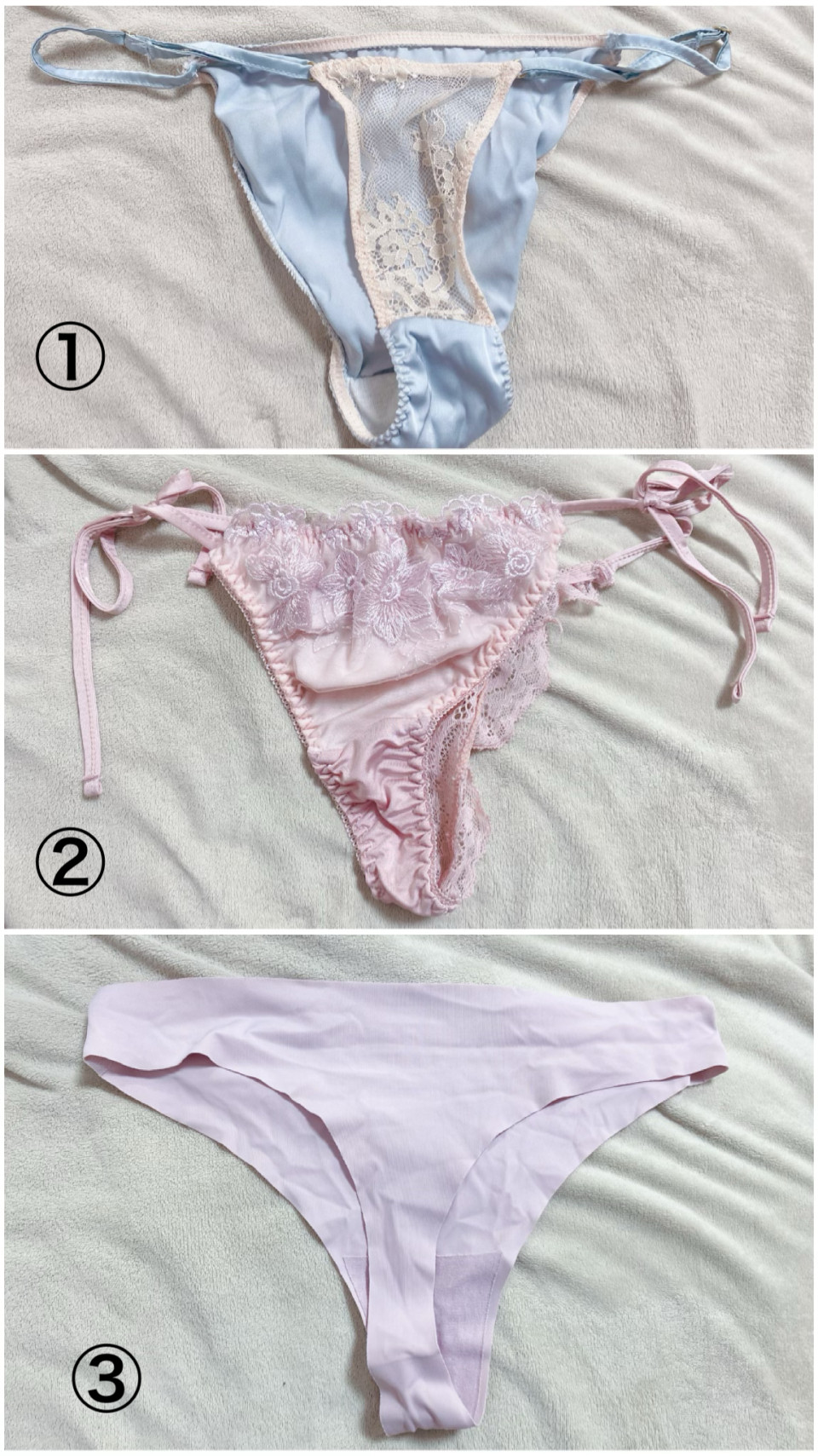 小さめのTバックです🩷 ②が1番小さくて、③が1番フィットします😌