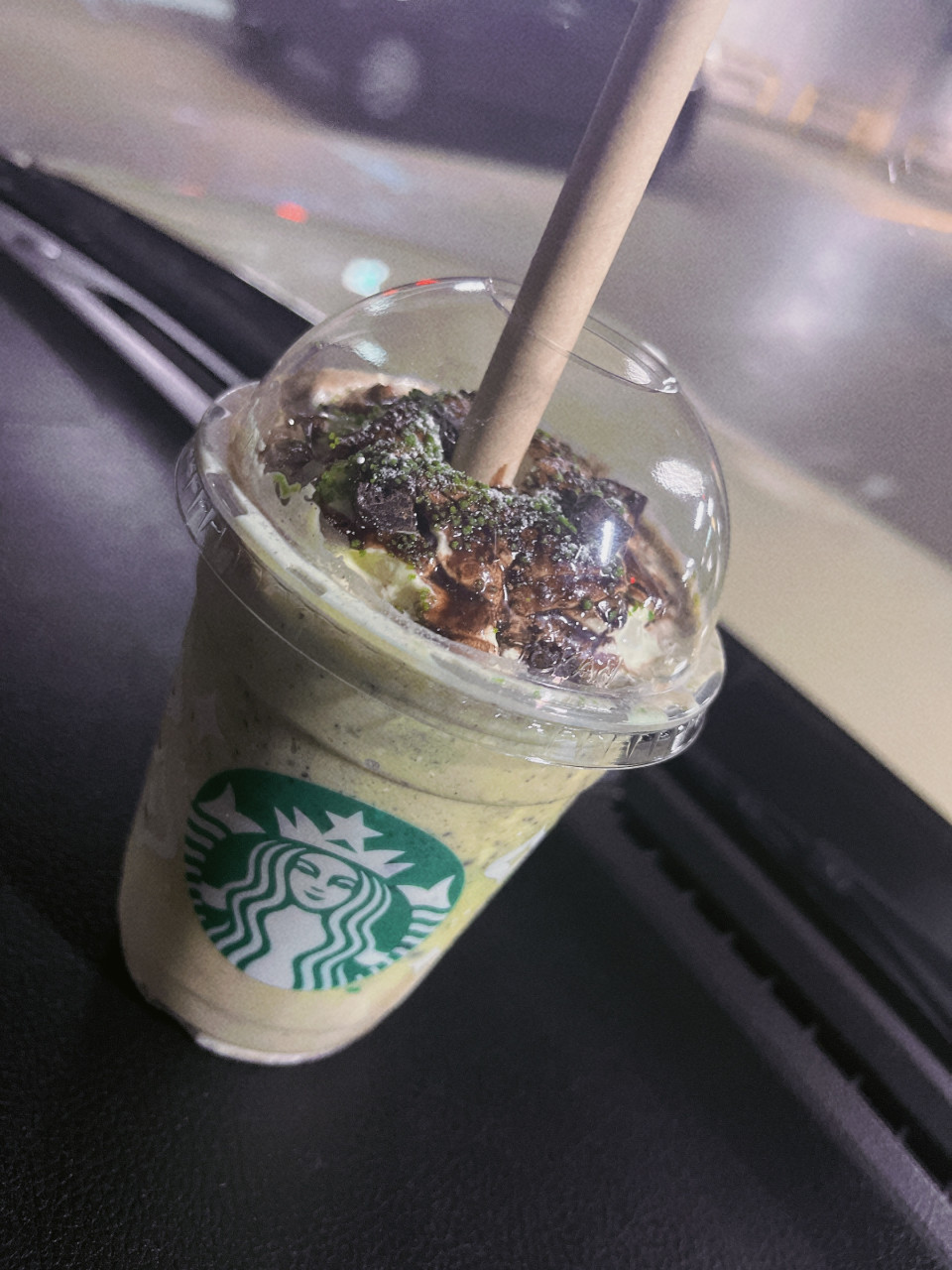 ピスタチオドリンク飲んだよ♡ おすすめかすたむ ♡アーモンドミルク変更 ♡チョコソース追加 ♡チョコチップ追加 ♡キャラメルソース追加 ♡ホイップに変更 だよ♡