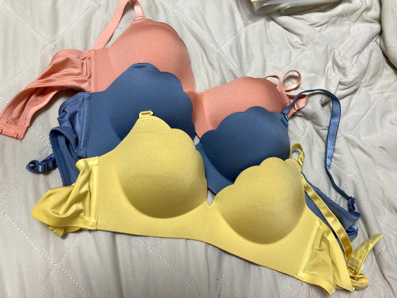 衣替えとともに下着たちも買い変えようかと整理してたら中学高校時代に着ていたブラジャーが出てきました。 (最近も時々つけてる日ありましたが…) ご要望あればオプション付けて出品したいと思ってます!