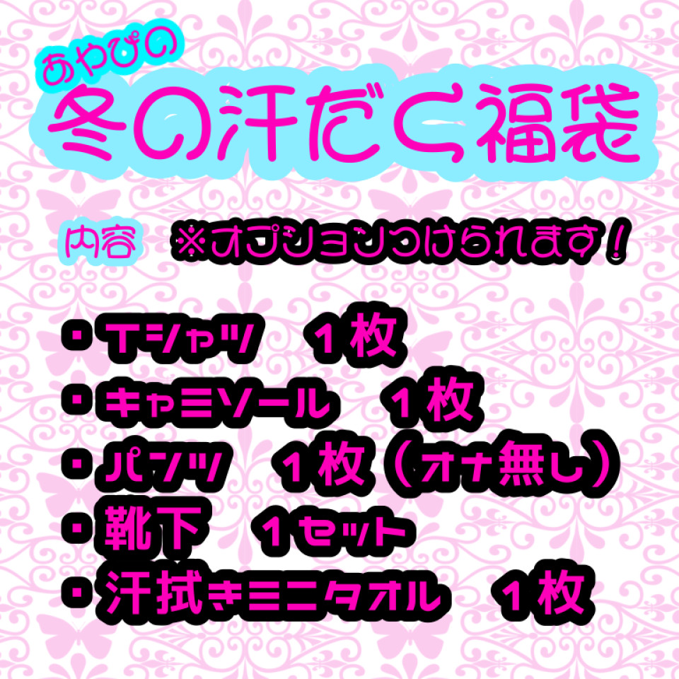 以前も運動して汗かいて作った福袋セットを出しましたが、最近ダンスを始めたので汗だくの機会が増えました。なのでダンス後の物を数量限定で出品します。