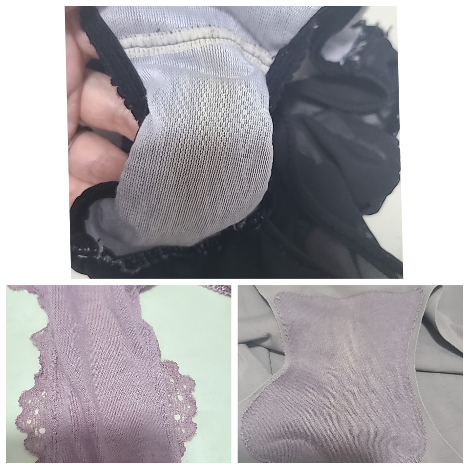 遅くなってごめんなさい߹ᯅ߹ 出品中のパンティのクロッチ部分です♡ 上 長年愛用パンティ 左 総レースパンティ 右 シームレスパンティ になります(ᴗᴗ⋆︎)₎₎ෆ