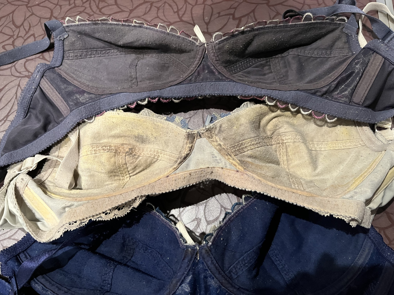 先程ブログアップのブラたちの裏面です🫢 年期がすごい……