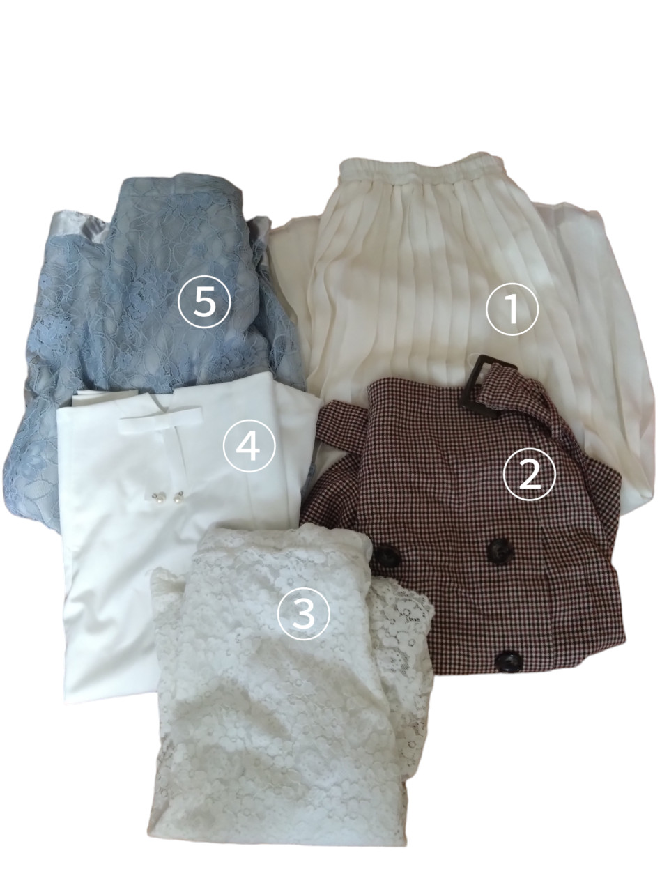 ③膝丈のレースの白スカート