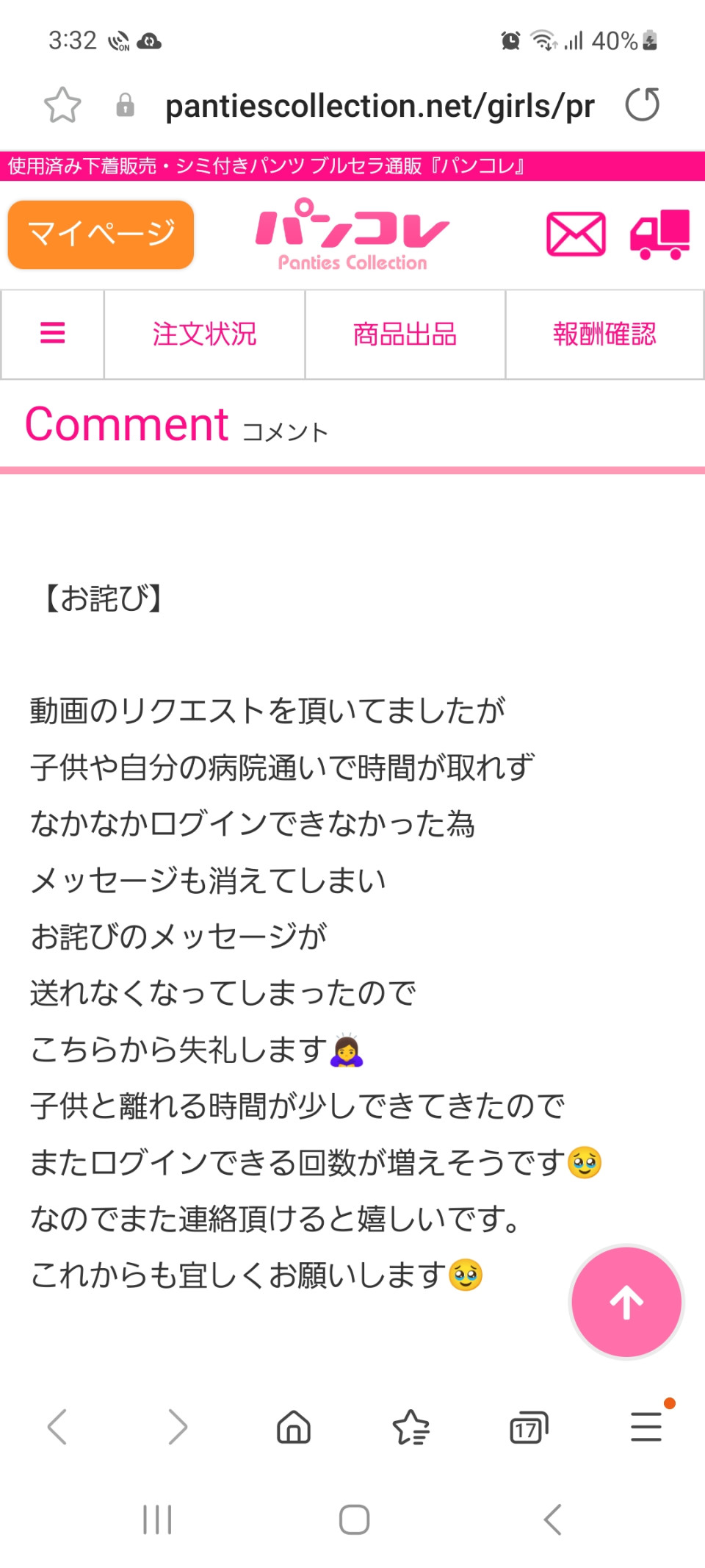 お久しぶりになってしまったので プロフ編集しました🙏💦 今日は少し時間が出来たので 汚れの落ちなくなってしまったパンティを 出品したいと思います🫡