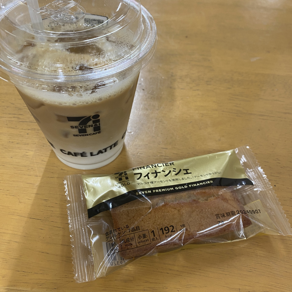 セブンのカフェラテと大好きなフィナンシェを食べてます💖
