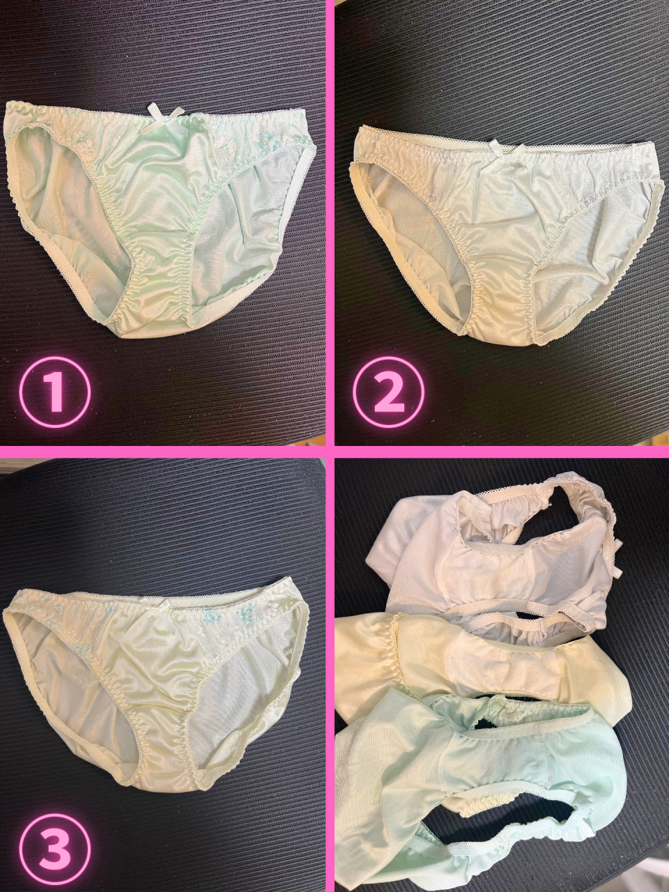 ①ミントグリーン→クロッチ毛玉多量