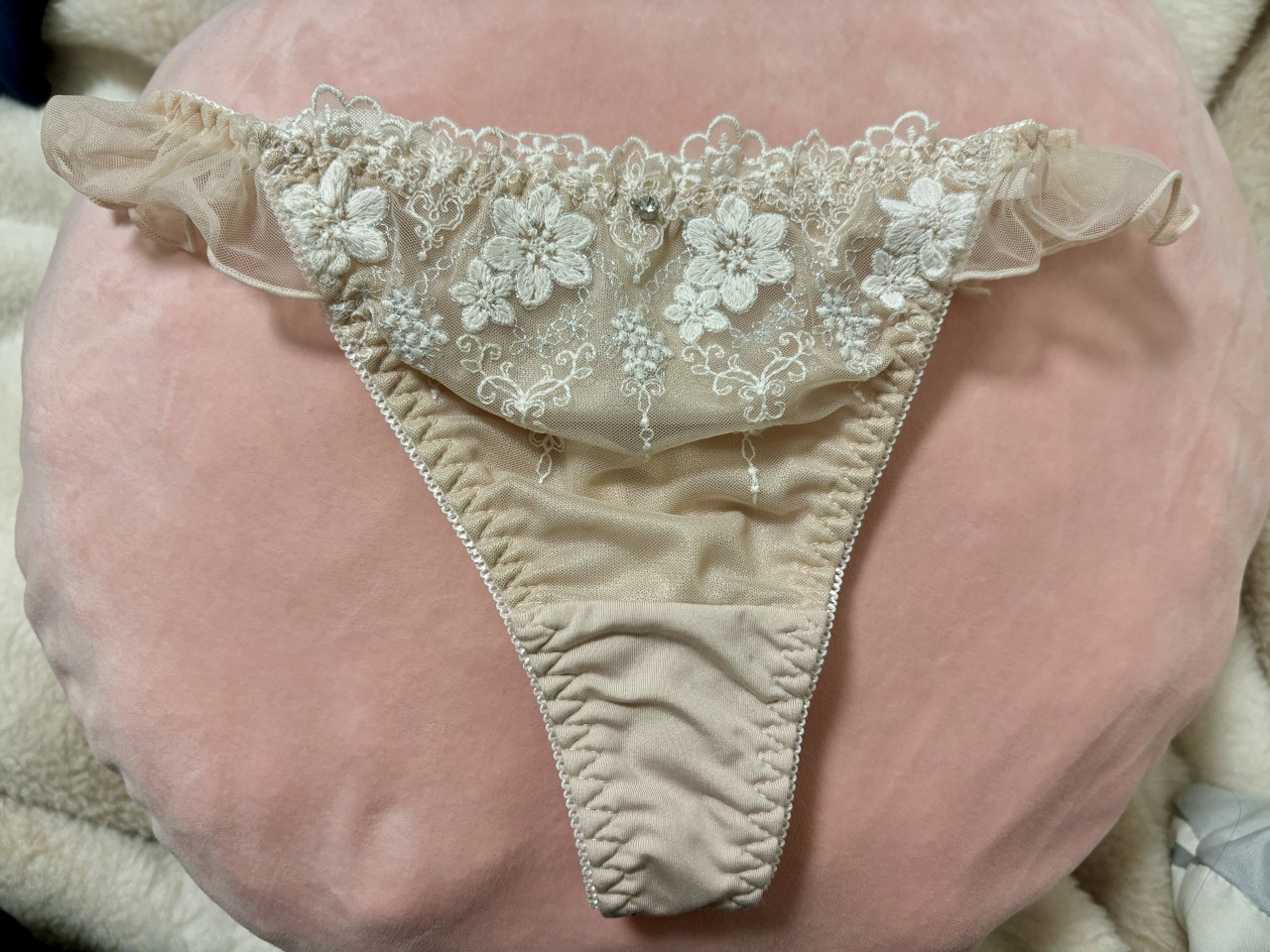 薄いピンクのTバックです! 可愛くてお気に入りです(⁎ᴗ͈ˬᴗ͈⁎)