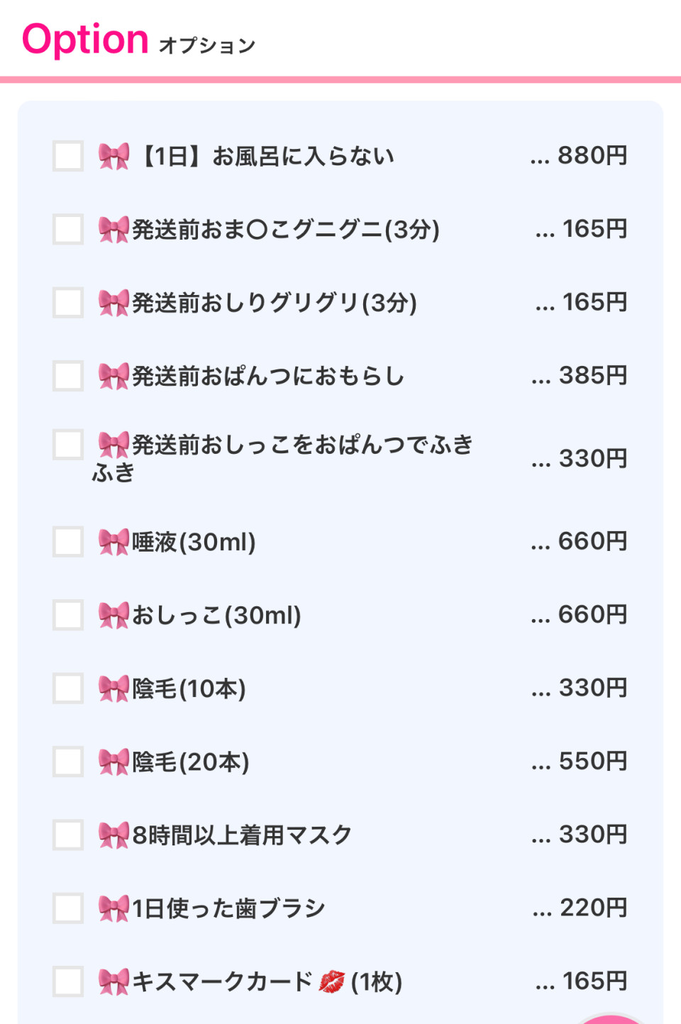 対象の有料オプションをおひとつサービスさせていただきます♡