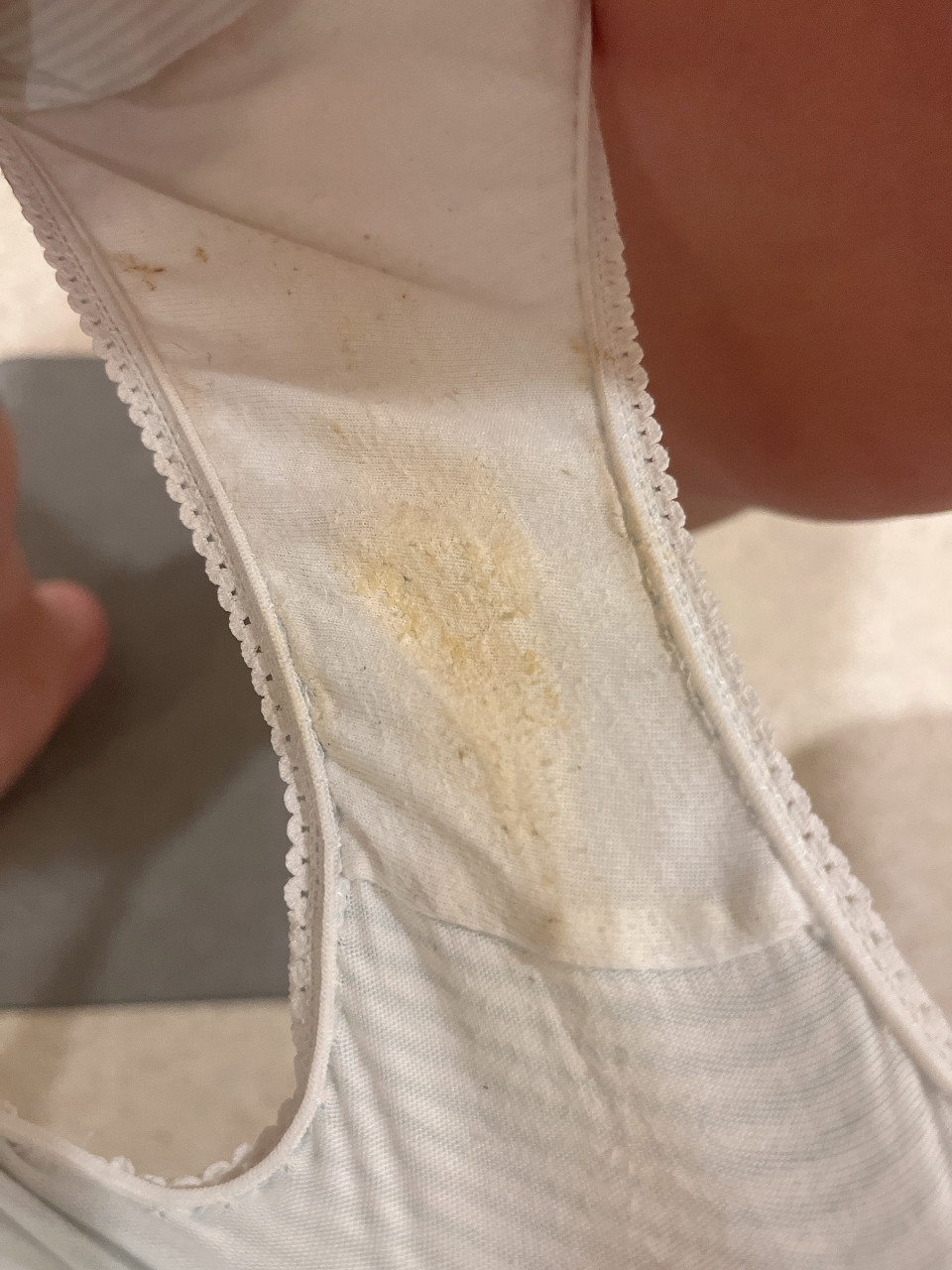 何もしてないのに 汚れちゃった🥹🥹 寝る前おなにーしたからかな!? おぱんつ貰ってください♡♡