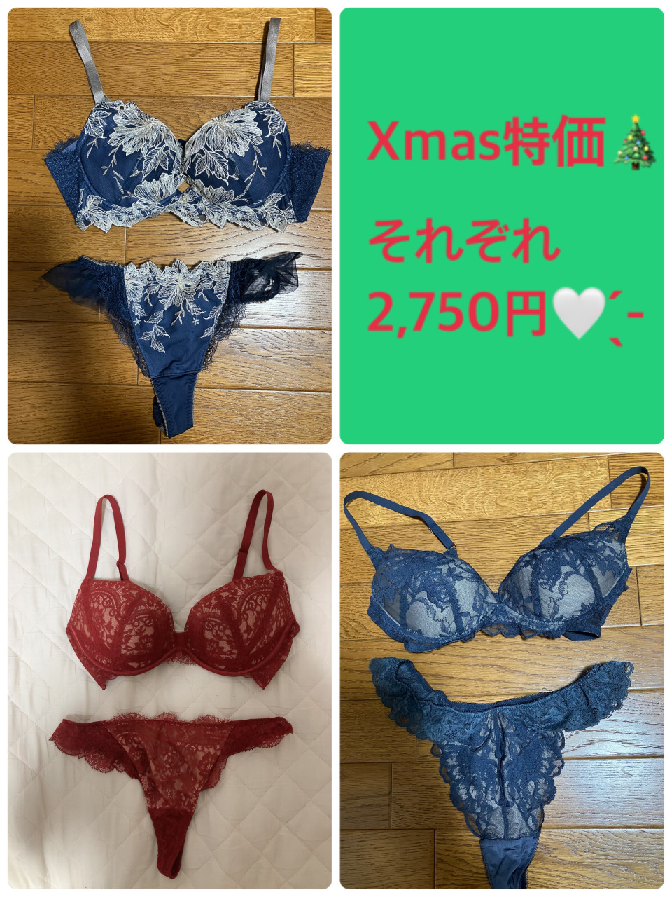Xmas特価で御奉仕🎄です🩷 それぞれ2,750円🤍 ̖́- オナ付きです(*´艸`) ブラ&パンティのセット残り少なくなりましたので、この機会にお迎えいただけたら…嬉しい🥹✨