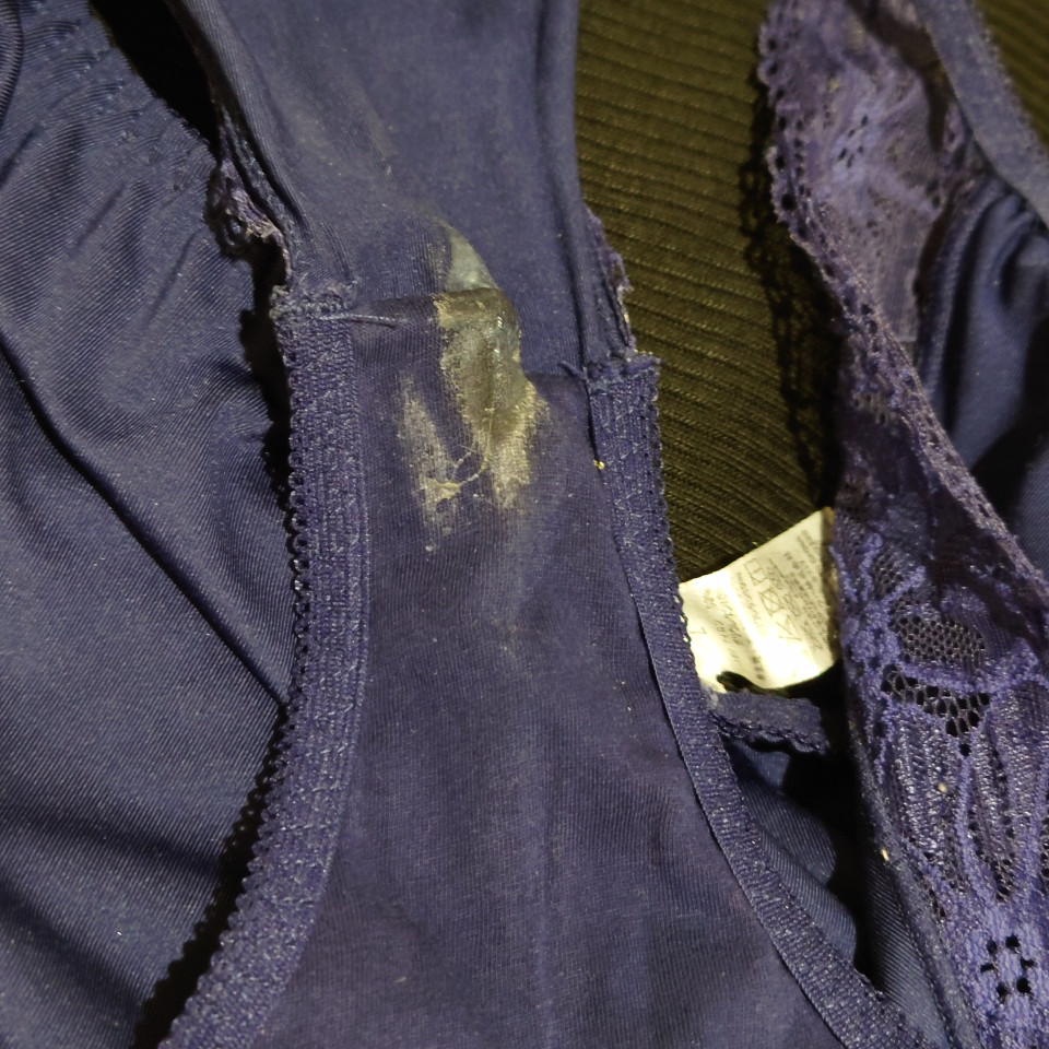 昨晩出品した青のパンティーを今日履いていたのですが、1日着用でのお汚れってどれくらいだろう?と思われる方もみえると思うので写真掲載致します(⸝ᵕᵕ⸝⸝)