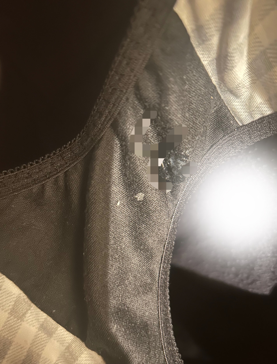 お兄様方こんばんは〜! 今日は一日中むらむらしてしまい、少し触っただけでとろとろ😖 クラッチ部分を少しチラ見せです🤫 黒いからすごい目立っちゃう😫