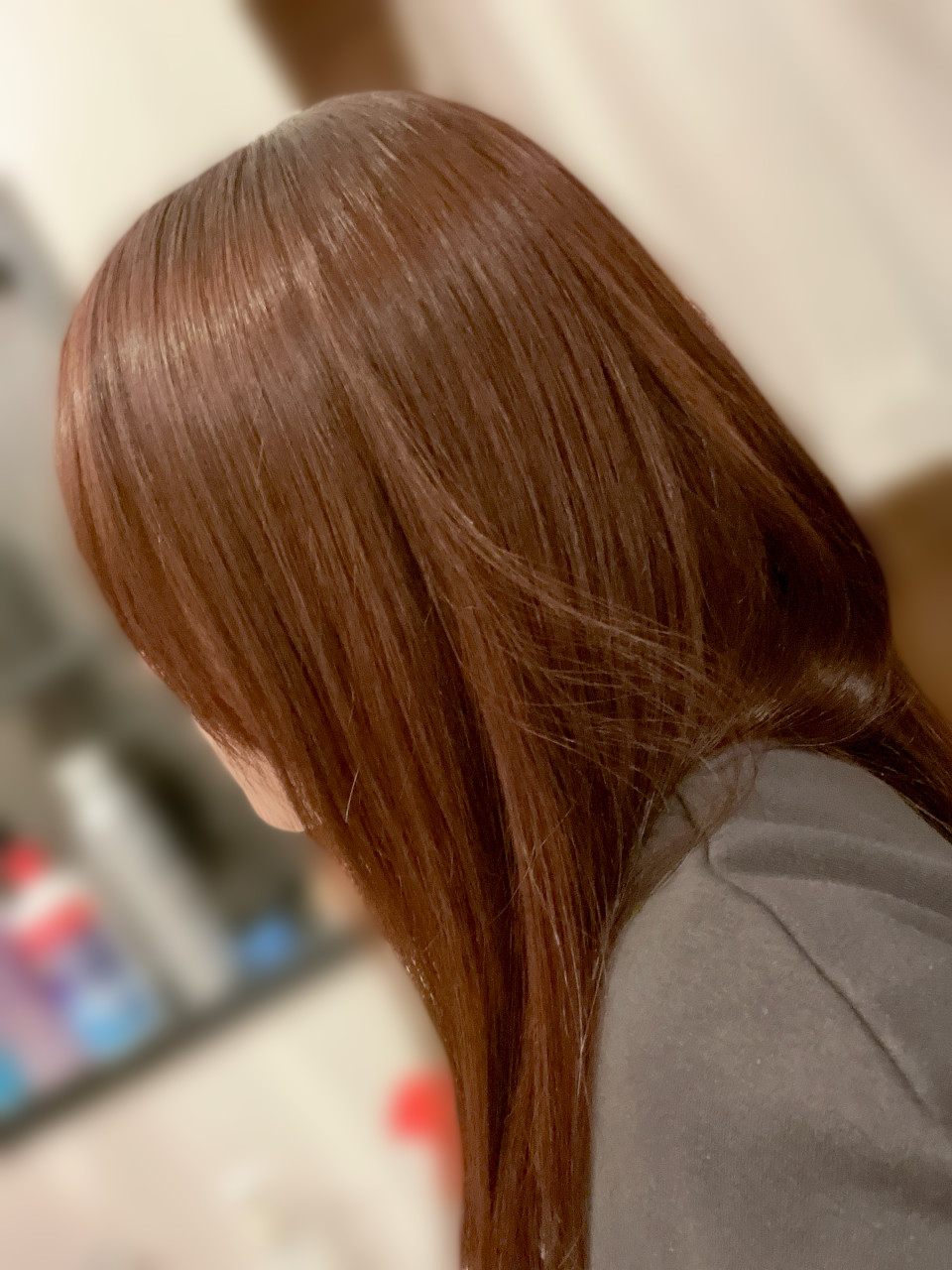 腰まで伸びていた髪を、肩甲骨くらいまでバッサリ切りました❣ 毛先のダメージがすごかったので手触りが良くなって嬉しい😘 カラーもベージュ系に染め直し🫰🏻