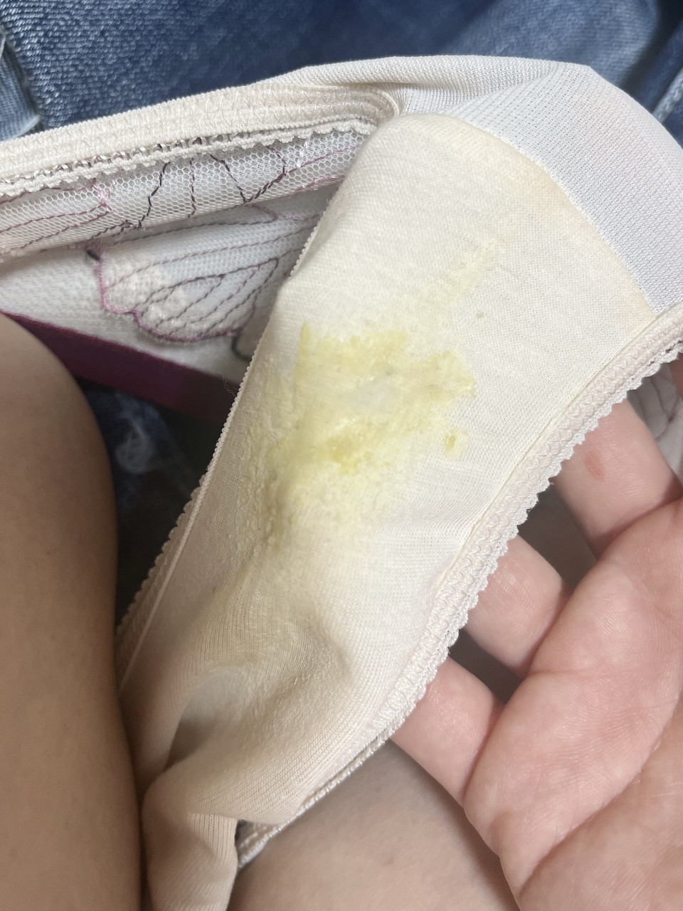 お仕事前に4回もイっちゃいました…🫣💓 そのまま1日履いて、こんなに汚れがついちゃいました🥺 いじいじしてるところは出品ページで見れちゃいます🫣 ただいま出品中です💓 早い者勝ち🥰