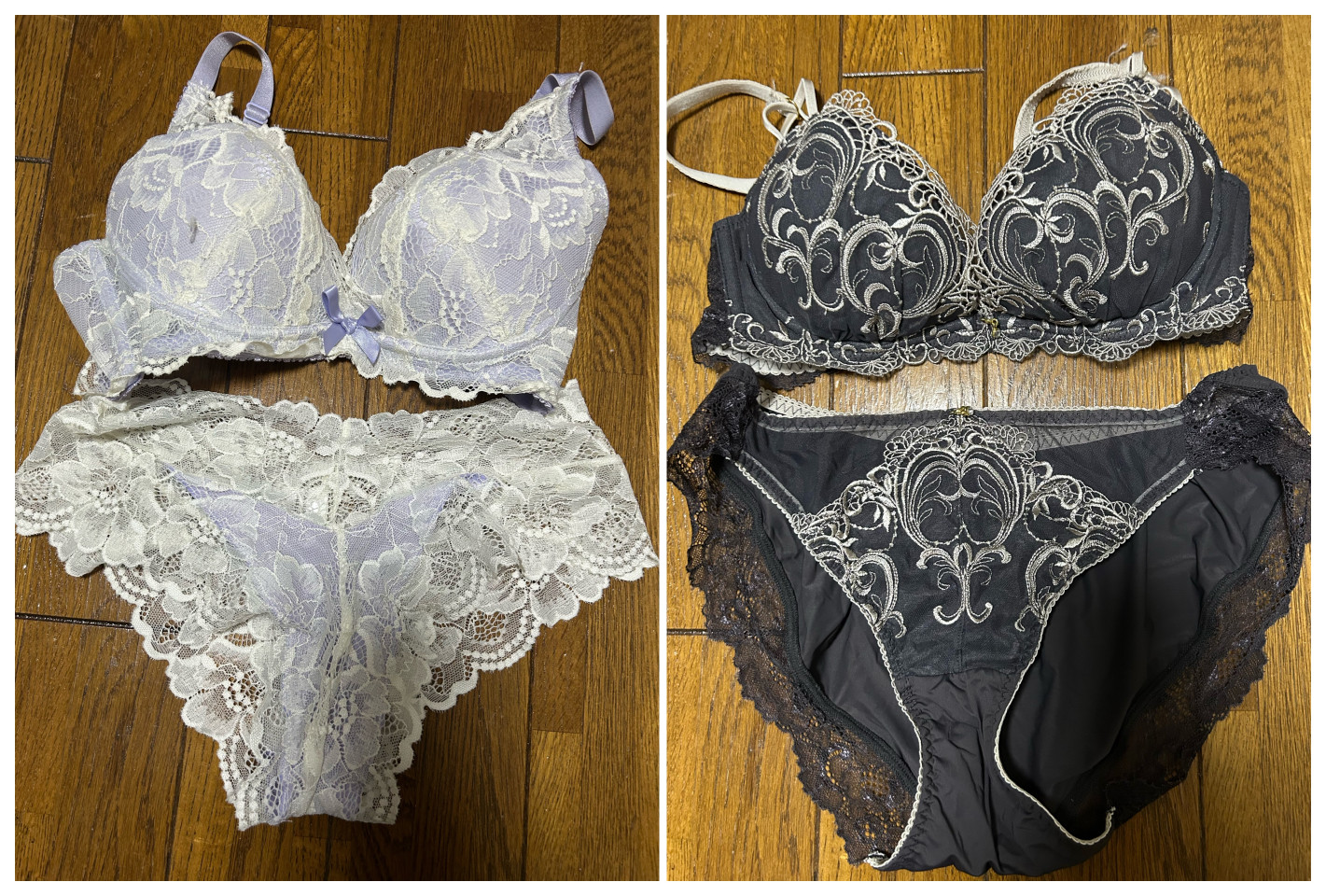左:aimerfeel 白✖︎ラベンダー ローライズパンティ 右:tutuanna チャコールグレー