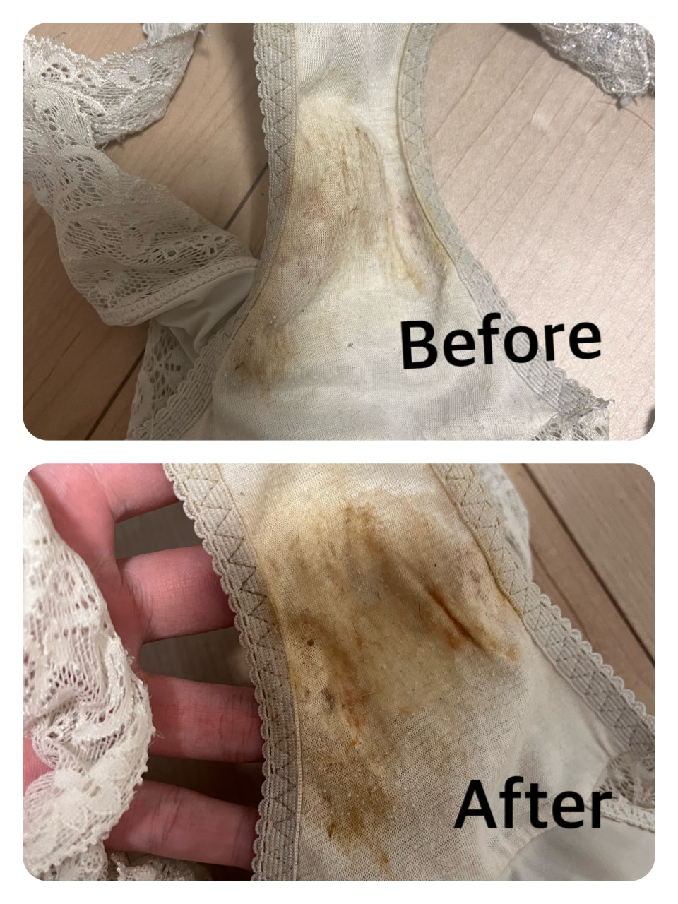 お気に入りの白の可愛いパンツがクタクタになったので出品しました✨️ かなり汚れてて、洗濯しても落ちないぐらい汚れてる(笑)