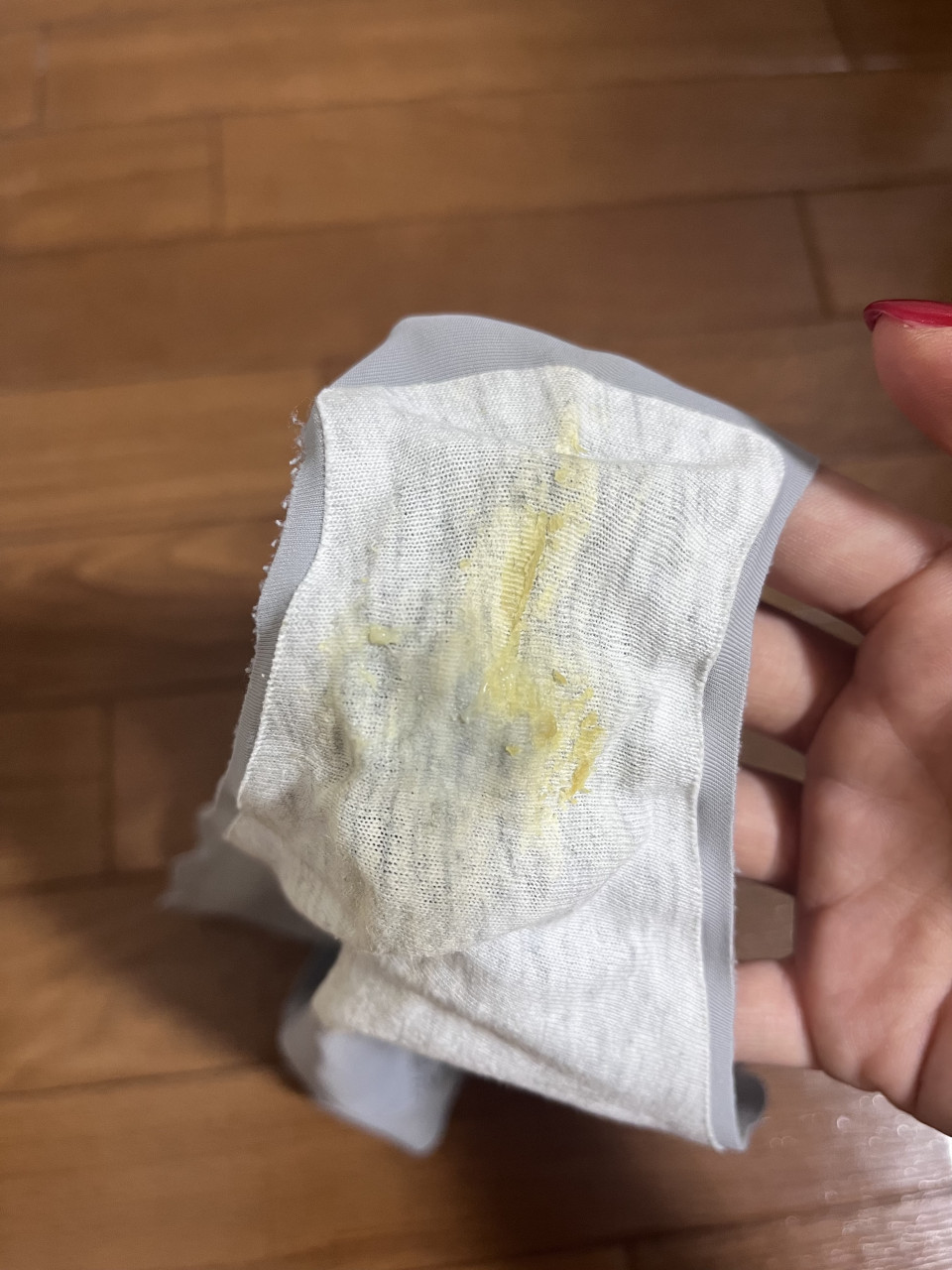 本日着用したシームレスパンティを ゲリラ出品しちゃいました✨️ くい込みまくって表までヌレヌレです♡🫣 早い者勝ち✊🏻 ̖́-