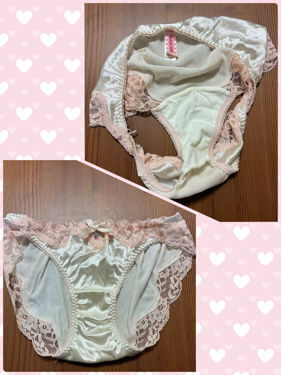 ピーチジョンのパンティ💕 白地にピンクのレース🤍🩷🤍🩷 外はサテンでツルツル✨ 内側は綿生地💡