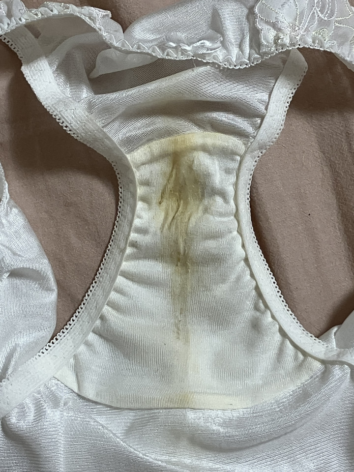 本日出品しました❣️ 純白のパンティが黄色シミ…くさくさなおぱんつです💦 表までうっすら見えるほど染みちゃってます🫣 お迎えお待ちしてます💖