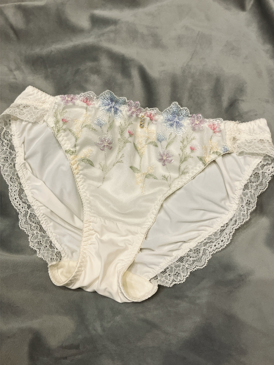 こちらのパンティーの魅力は、なんと言っても、カラフルで繊細なお花の刺繍ですね。