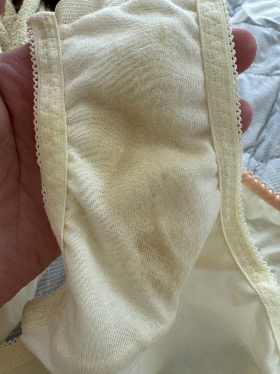 生理前だからかすごい白いおりものパンティになってる🥹 お風呂なし3日着用済みです☺️