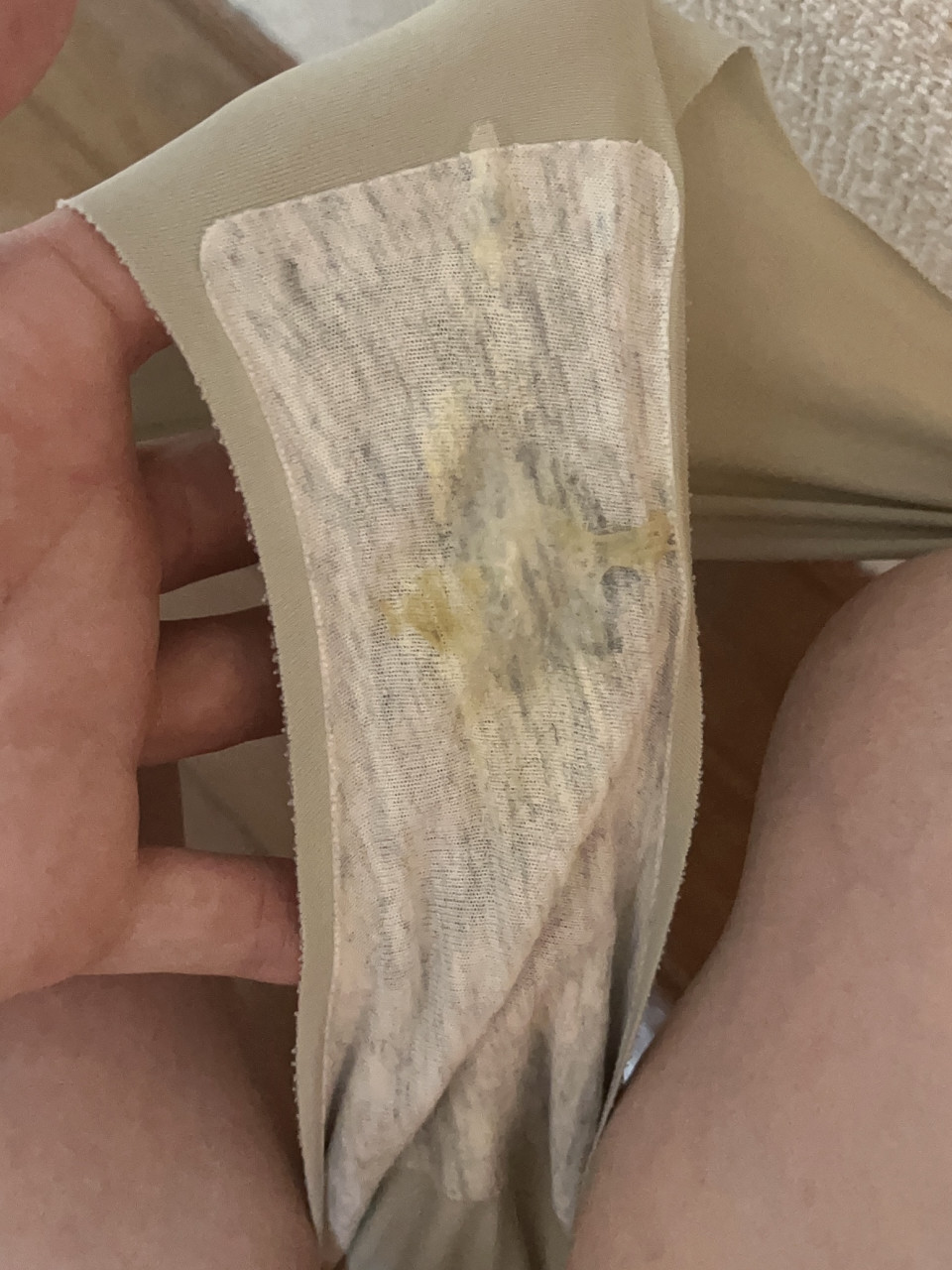 本日着用中のシームレスパンティを出品しました😍 パンティはしっかり1日食い込ませて、お汚れべったり💕 おもて側までシミができちゃってます🫣 エッチな着画もお楽しみいただきたいです🥰