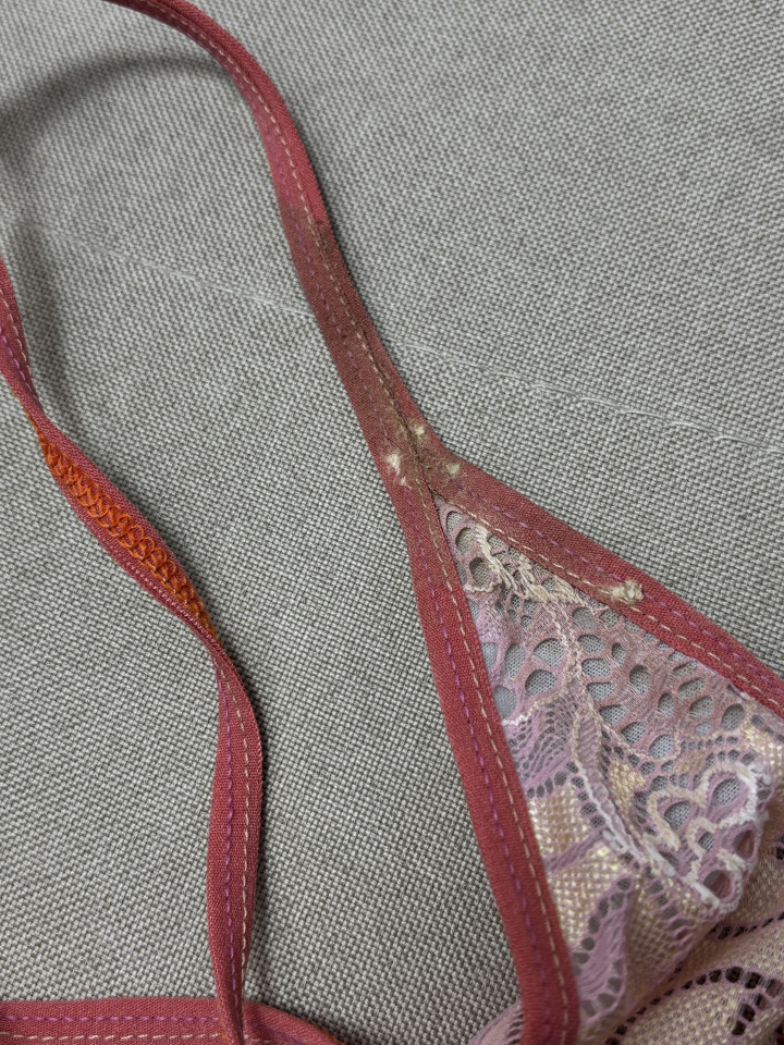 紐の食い込みで気持ちいいところ刺激されてやばいの。。。 中のポッケにローター入れて強制イキしちゃった>̳ ̫ <̳ᐡ 珍しく匂いついてるし、カスとして紐についちゃった🥺💓💓