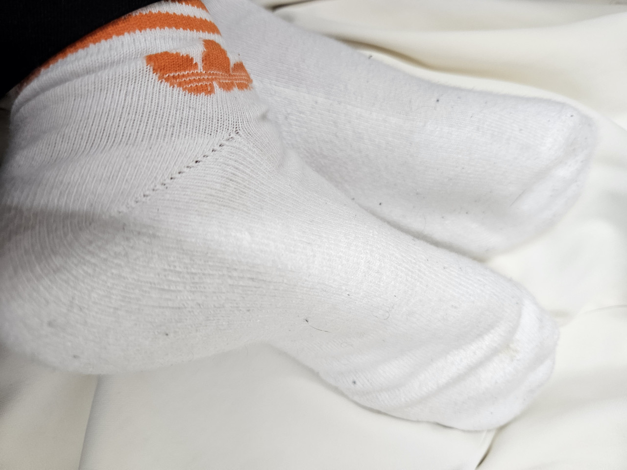 オレンジ色のラインが入ったスポーツブランドの靴下、洗って履き直してるんですけど……