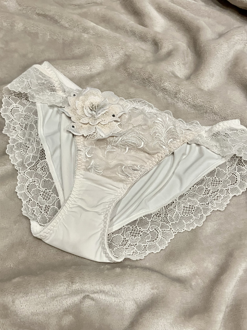 しっかり濡れてしまい、これも貴重な機会かなと思いましたので、昨日の撮影で着用した下着を出品してみました。