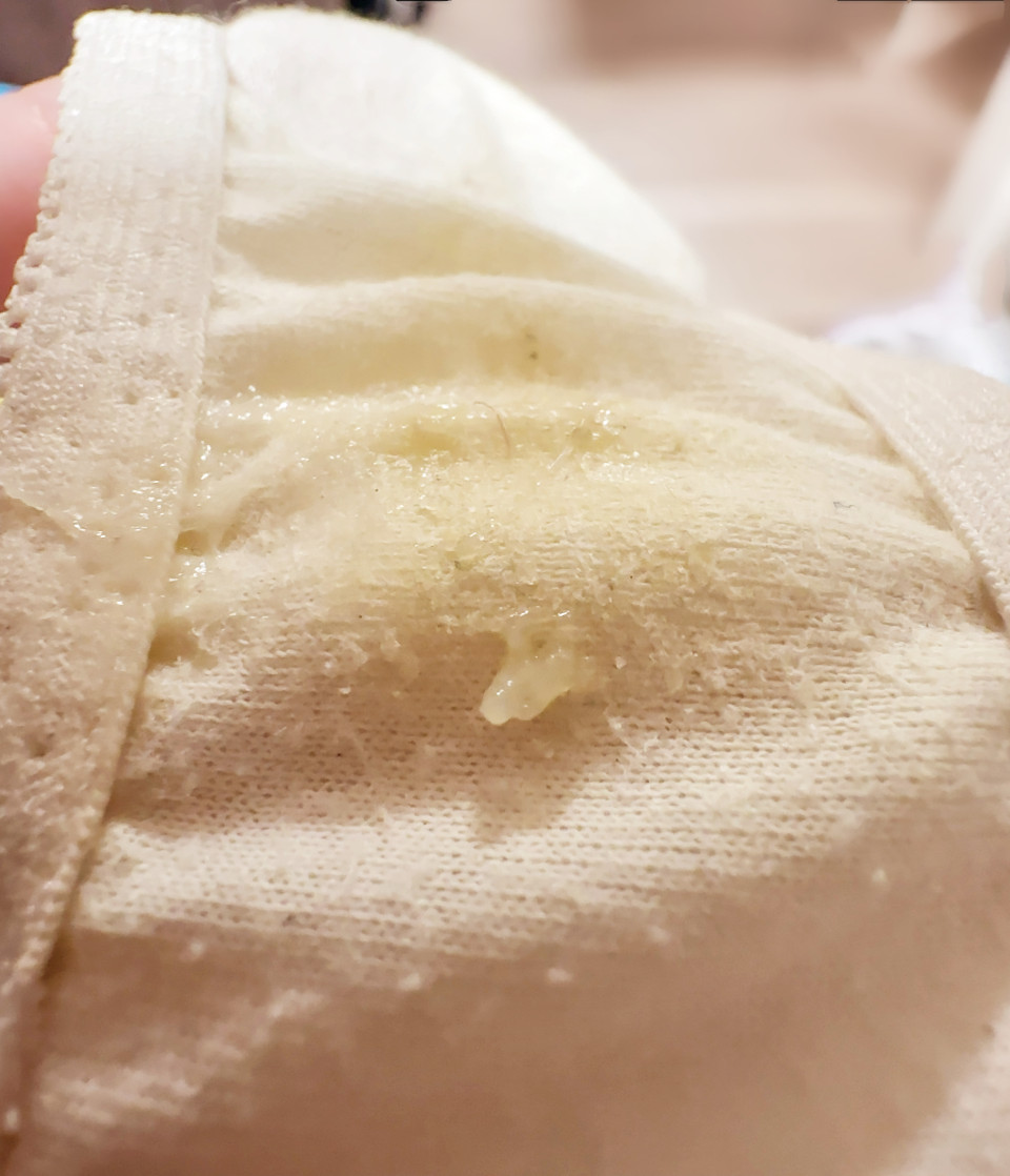今日出品したブラパン、脱いだ時に見てみたらとろぷるオリモノついてました💕 少しですがあんまりオリモノが出ない体質なのでレアです(⋆ᴗ͈ˬᴗ͈)” 見えるかなぁ…? ※出品は3日後までになります💦