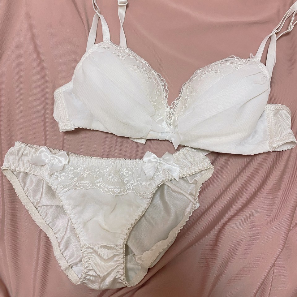 のどかはかわいい♡感じのおぱんつが好きだから、まずはのどからしいかわいい系の真っ白なおぱんつとブラのセットにしてみたよ💗
