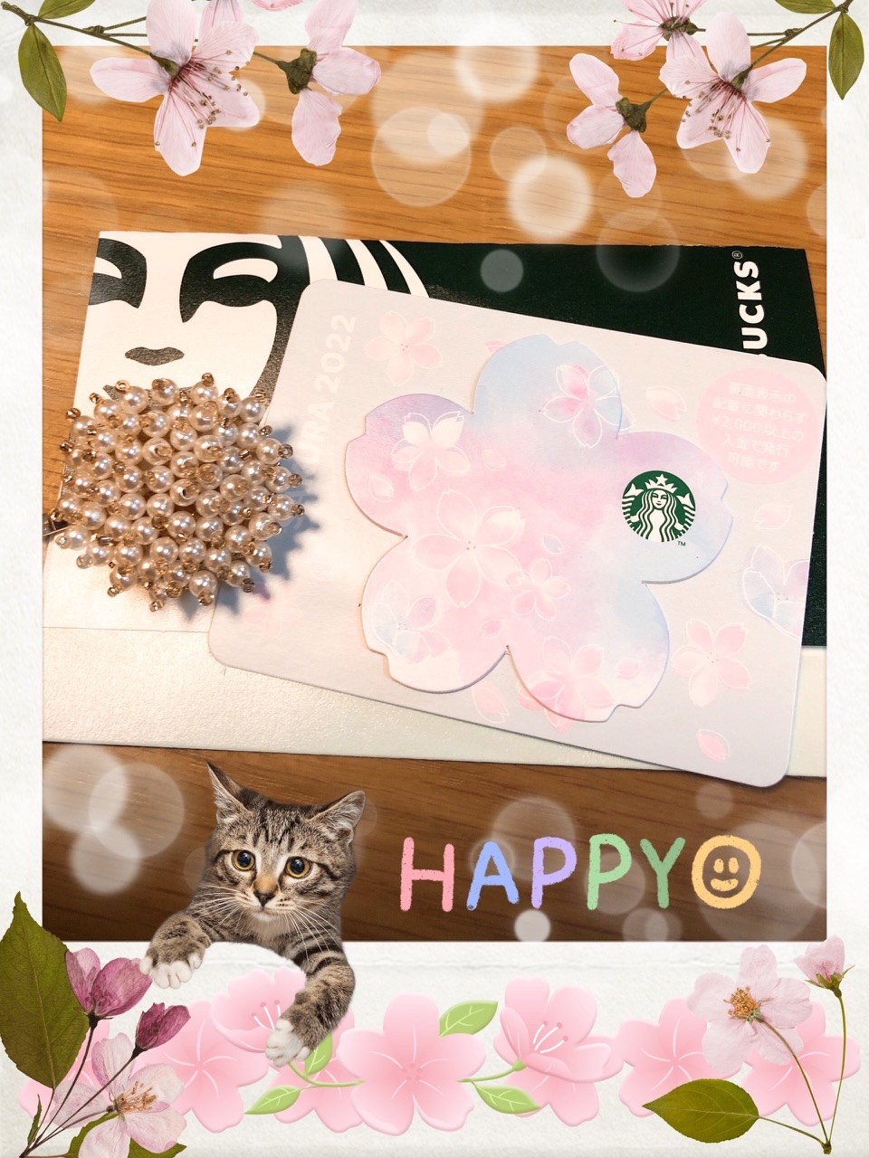🌸の形をしたスターバックスカードと髪飾り🌷*゚