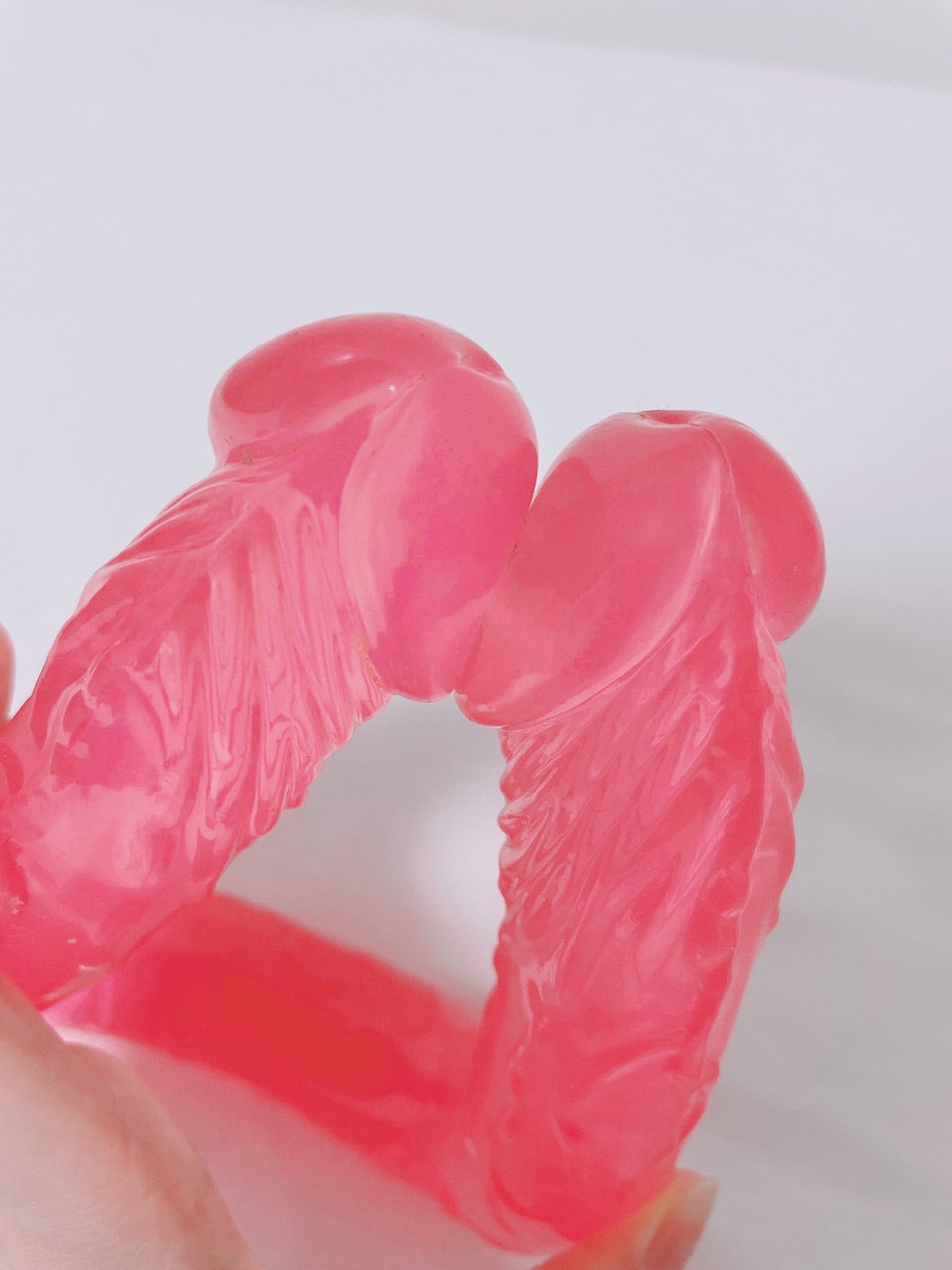 双頭ディルドでえっちしたら彼女ちゃんが気持ちよさそうに何回もイってくれてハッピー🥰 左が私が使った方なんだけど… 血がついたカピカピが残ってました😳💕