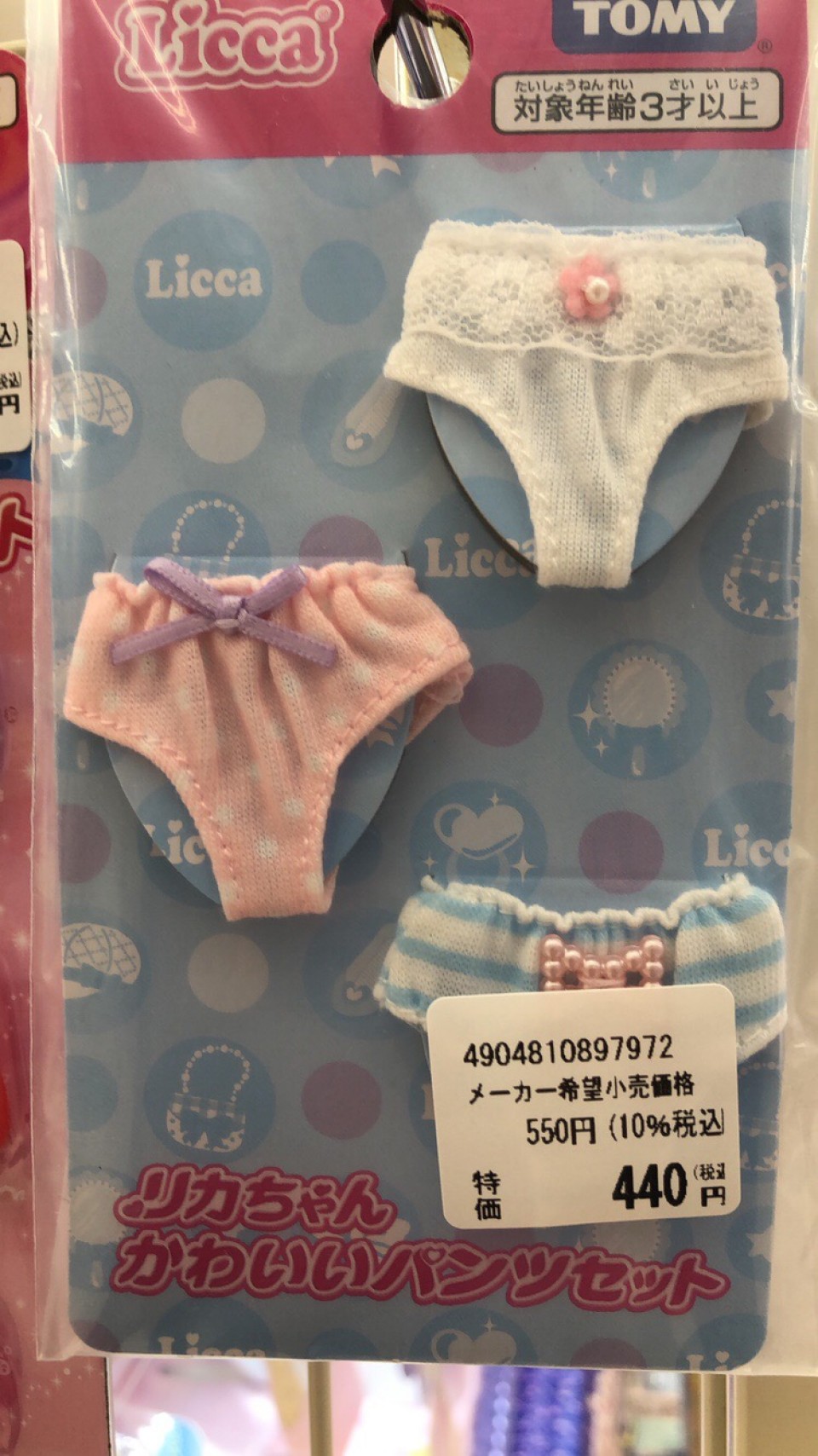 わたしは電気屋さんの中のおもちゃ売り場でリカちゃんのパンティーを見て白いパンティー可愛いな〜って眺めてました🤣
