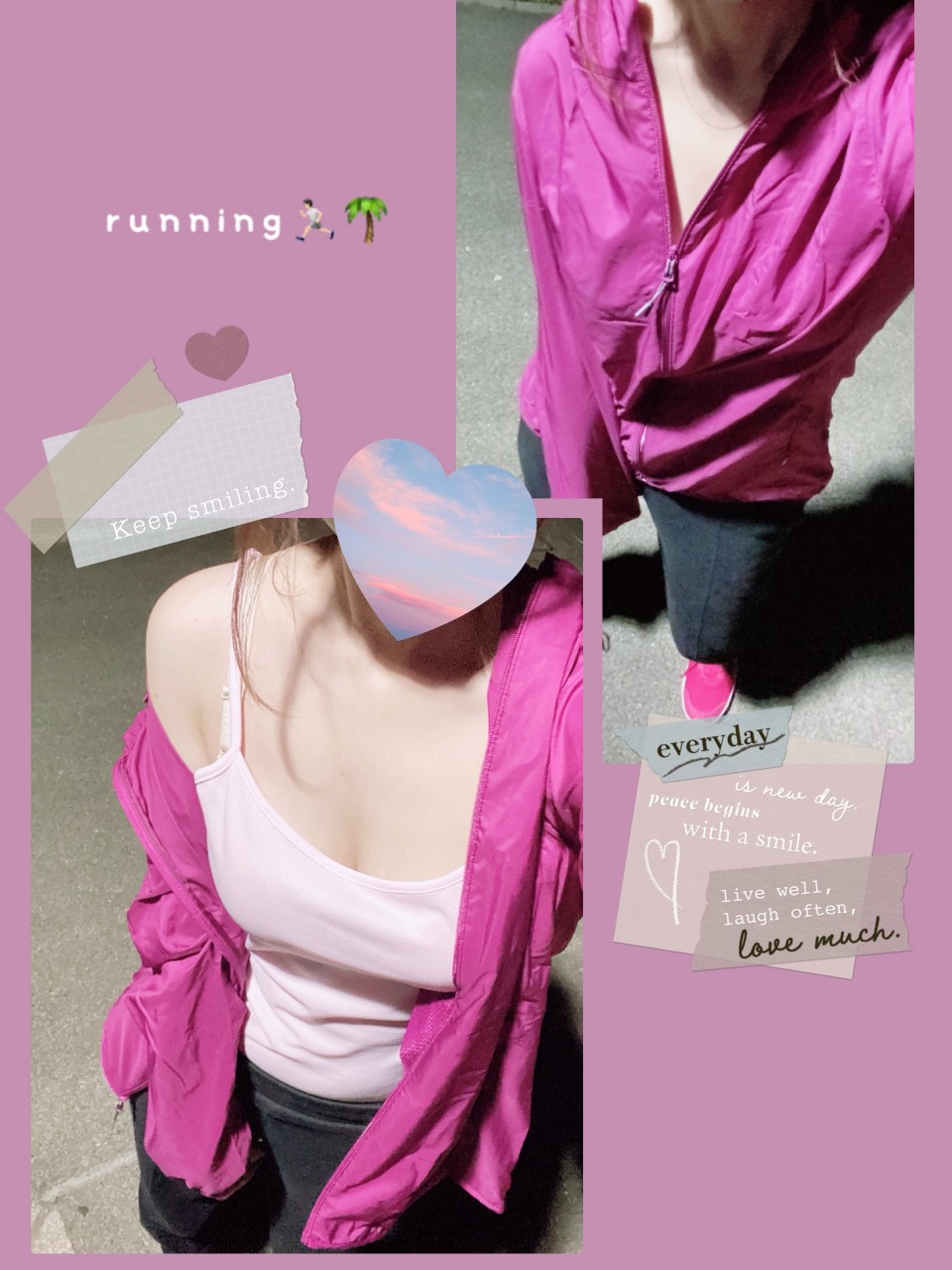 立ち止まってこの写真を撮ったんだけど、これもまた周りの目を気にしながらコソコソと♡ 普段はこんな服装でマイペースに走っています🏃🏻⋱