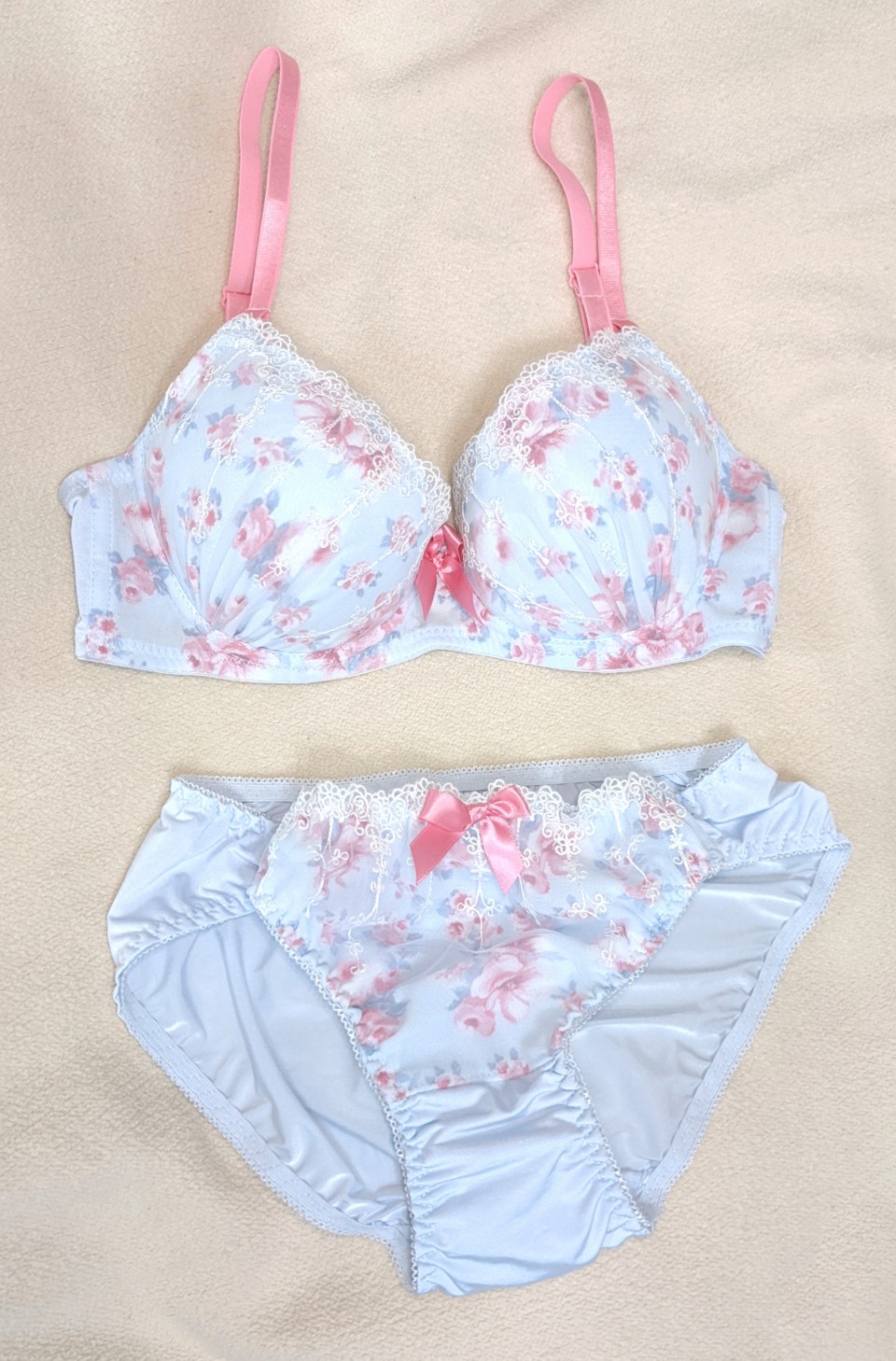 ブラパンは、水色にピンクの花柄が可愛いツルツル素材💖