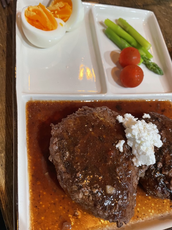 夕飯にハンバーグ作りました✌️ しかも、、ステーキやさんのハンバーグレシピで🙈❤️ もう、、、めっちゃ美味しかった😋 肉汁溢れる感じで、お店で食べてるみたいでした🎊(自分で言う)