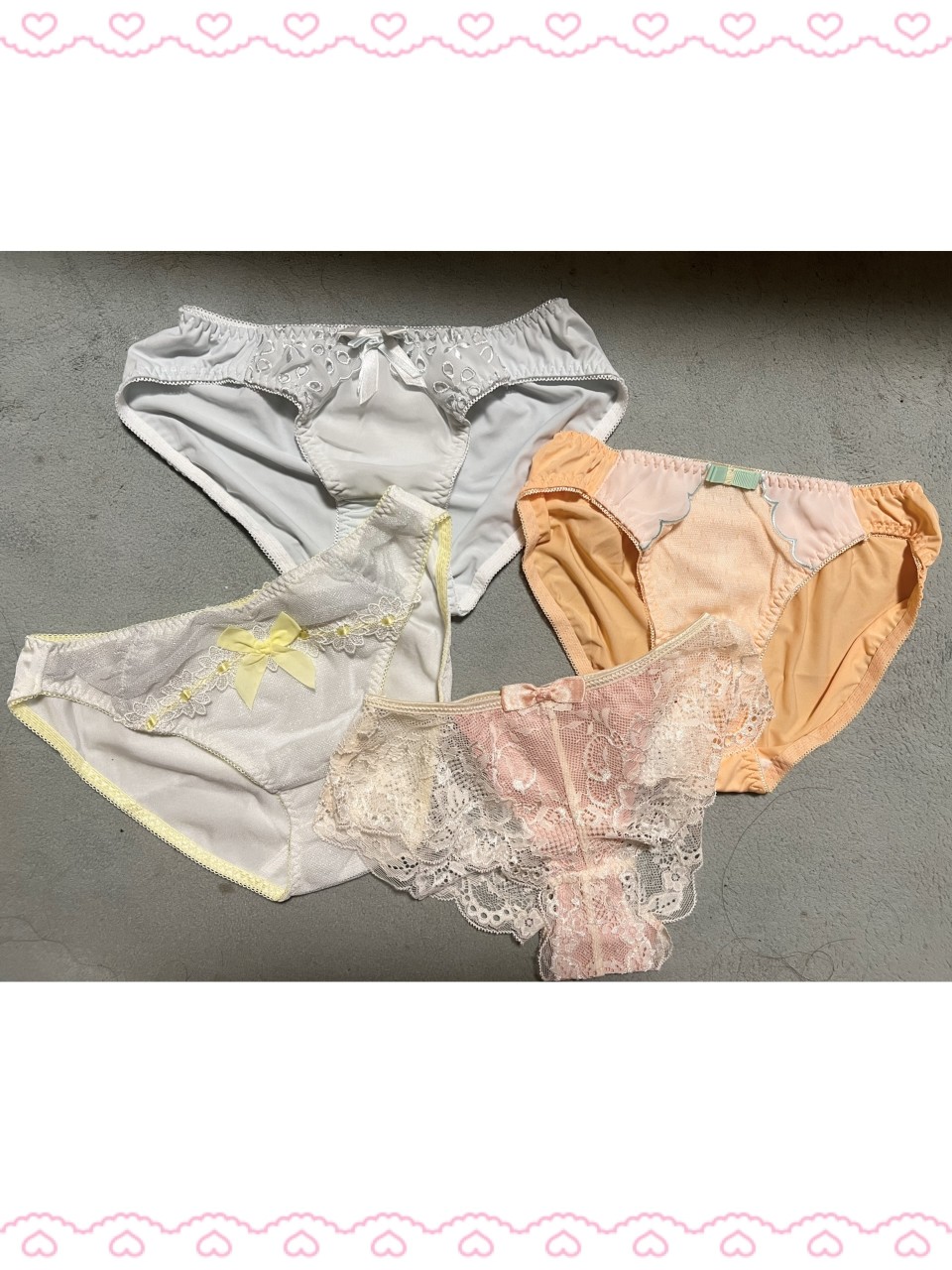 お気に入りパンティ出品しようか迷う中です\(//∇//)\💕可愛い系の女の子パンティお好きな方いますか??♡*.+゜気になるパンティ有ればいつもみたいにメッセージお待ちしてます٩(*´◒`*)۶♡💓
