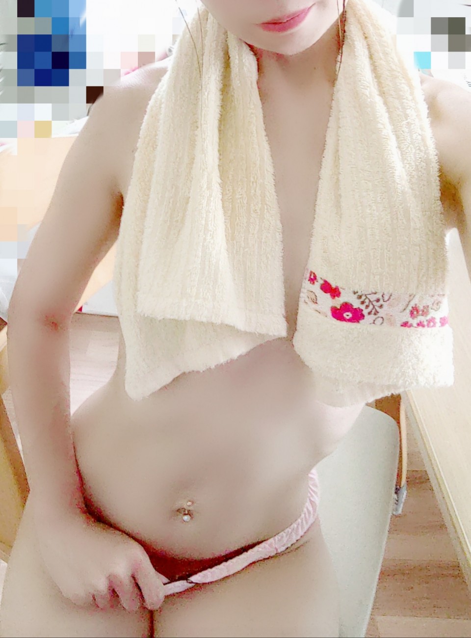 今日はお休みで朝一家族が起きる前にシャワー浴びました🐤 汗で部屋着やパンティ湿ってて💦 汗の香りがツンとしてました😅