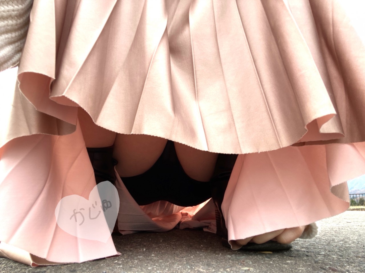 しゃがんで、スカートの中をパシャリ📷